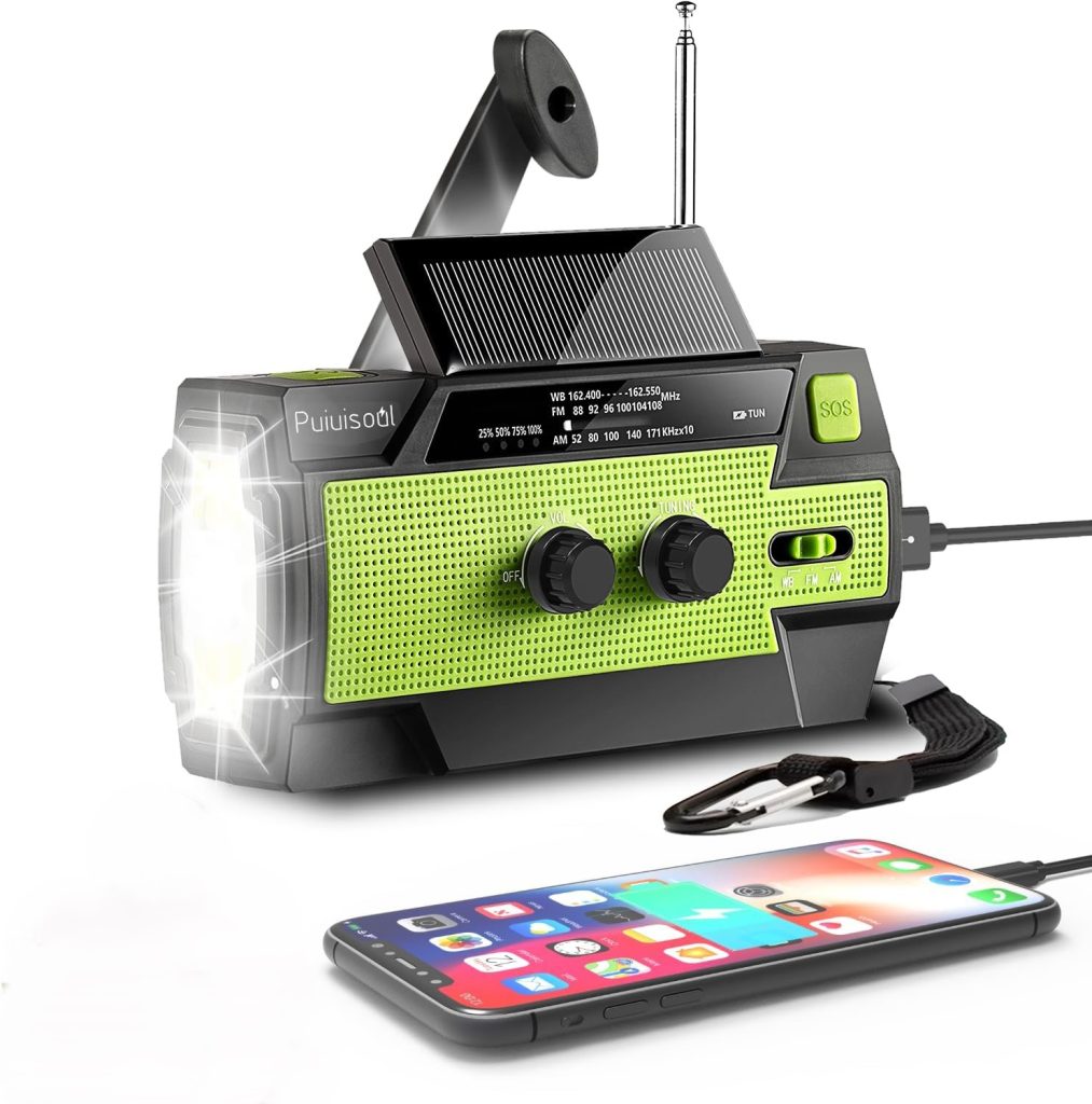 This Puiuisoul Emergency Weather Radio is favored by users for its large battery capacity and high functionality in disaster scenarios.